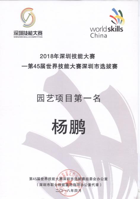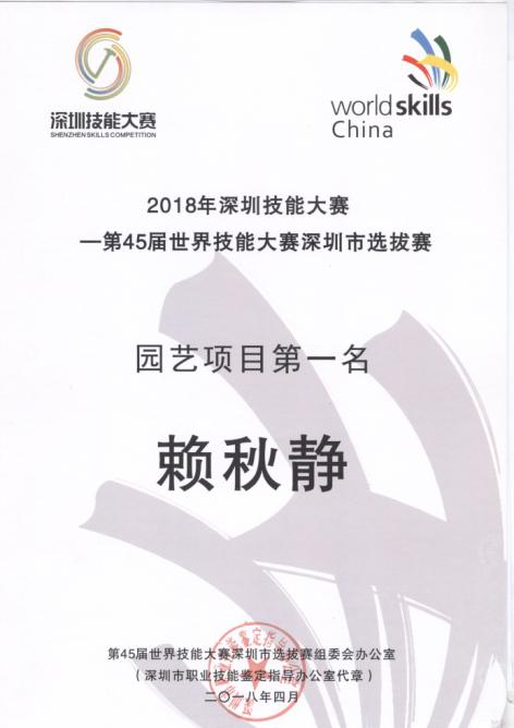 2018年3月3日,由深圳市人力资源和社会保障局、深圳市教育局主办,深圳技师学院和深圳市职工教育和职业培训协会承办,深圳市职业技能鉴定指导中心技术指导 的第45届世界技能大赛园艺项目深圳市选拔赛在我院东门南边施工棚成功举办。比赛期间,各单位领导莅临比赛现场进行了观摩指导。同时,风景园林系也组织了学生进行观摩学习。